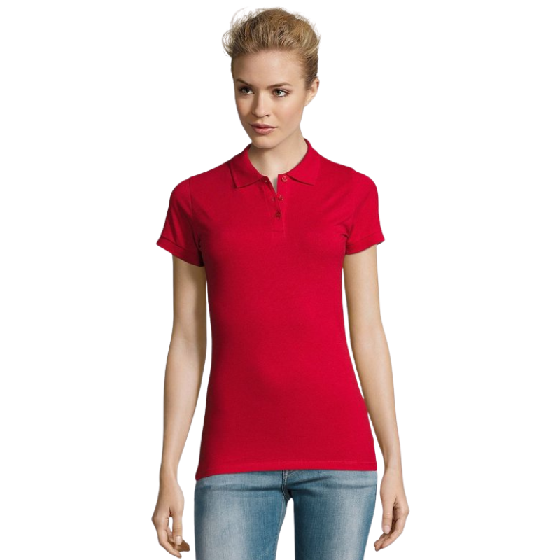 Polo camisero femenino en tela pique de alta calidad, color rojo vibrante que transmite energía y confianza. Perfecto para uniformes de trabajo, promociones o uso casual con un estilo moderno y profesional.