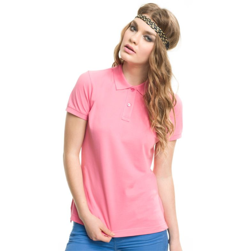 Su tela piqué de alta calidad (60 % algodón y 40 % poliéster) ofrece frescura y durabilidad, mientras que el color rosado aporta un toque femenino, moderno y sofisticado.