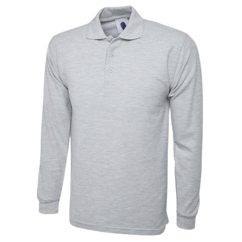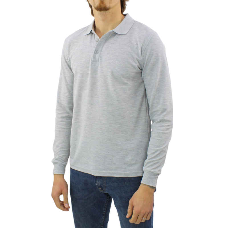 Polo camisero pique manga larga color melange para hombre, confeccionado en tela piqué de primera calidad. Ideal para uniformes empresariales, colegios o uso casual, combina un diseño moderno con comodidad y resistencia.