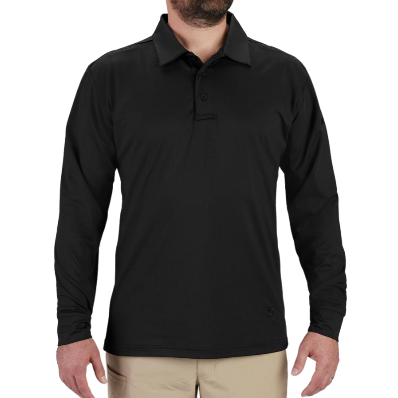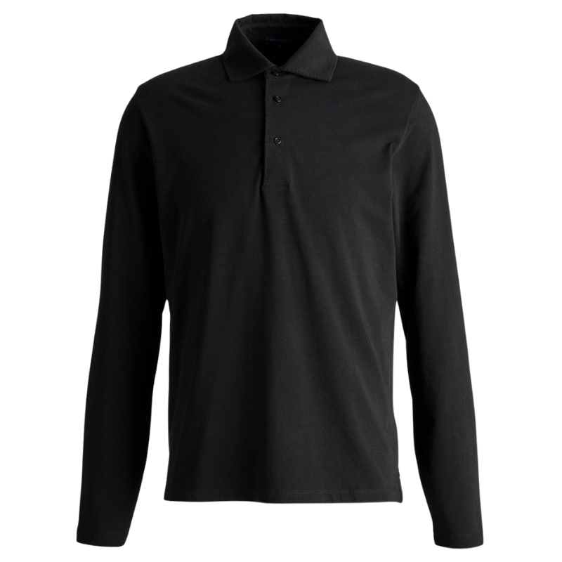 Polo Camisero Pique Manga Larga Negro para Hombre
